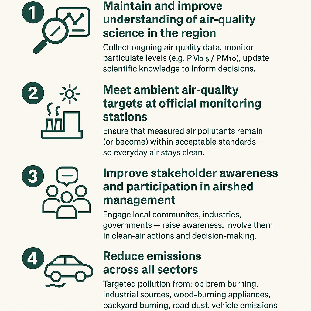 The BVLD Airshed Management Society’s mission is to facilitate clean air solutions in the Bulkley Valley – Lakes District for the Protection and Improvement of the Health of BVLD Residents. By Continuously Improving Air Quality and primarily targeting a pollutant known as particulate matter, (PM), The BVLD Airshed Management Plan presents a set of goals, indicators and strategies that together provide a roadmap to achieving better air quality.